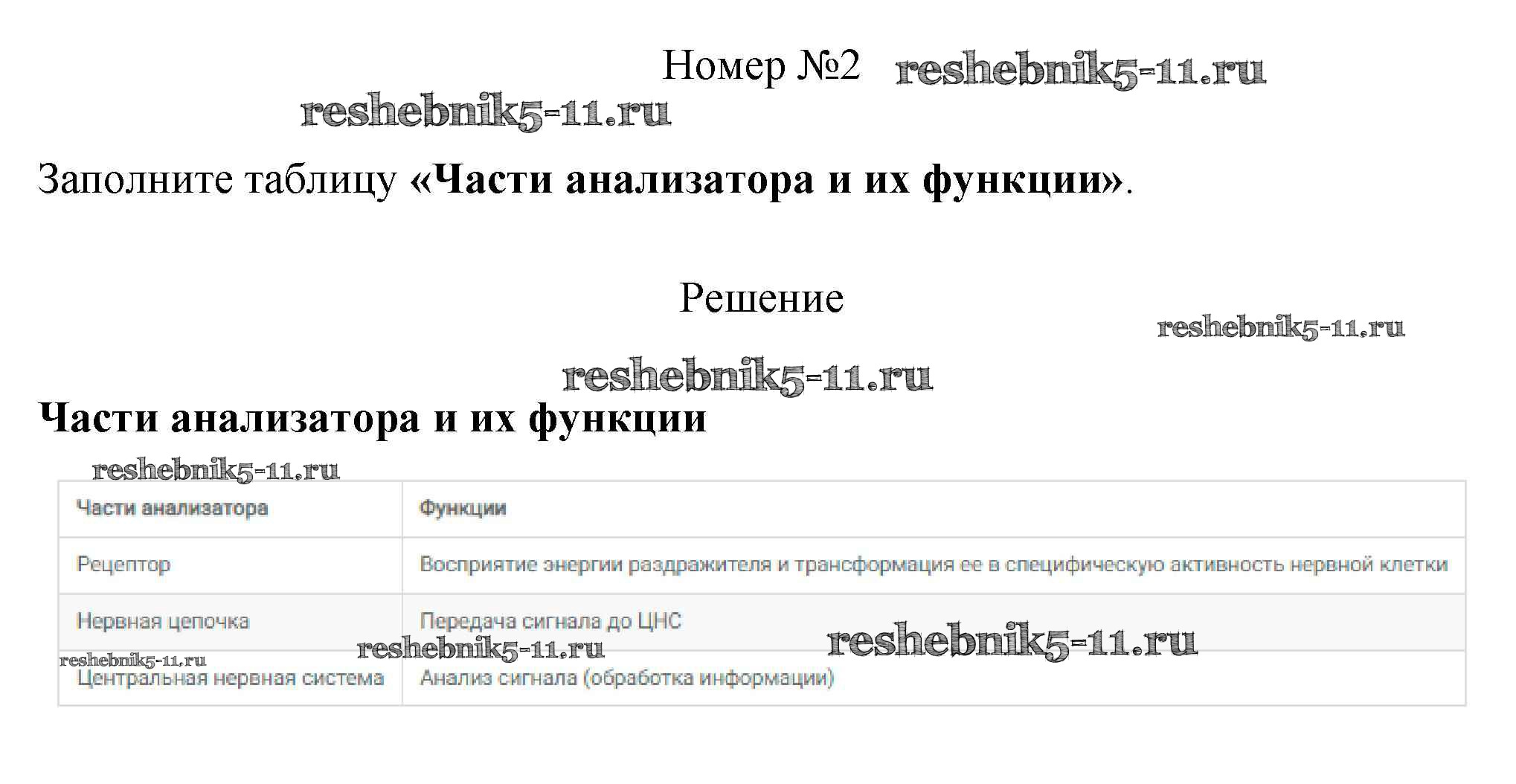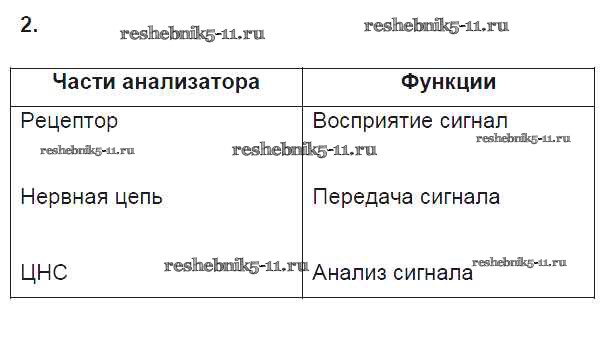 Готовая домашняя работа с ответами по Биологии за 8 класс Пасечник, Швецов Рабочая тетрадь Линия жизни Просвещение 2019 ФГОС - §45. Понятие об анализаторах 2
