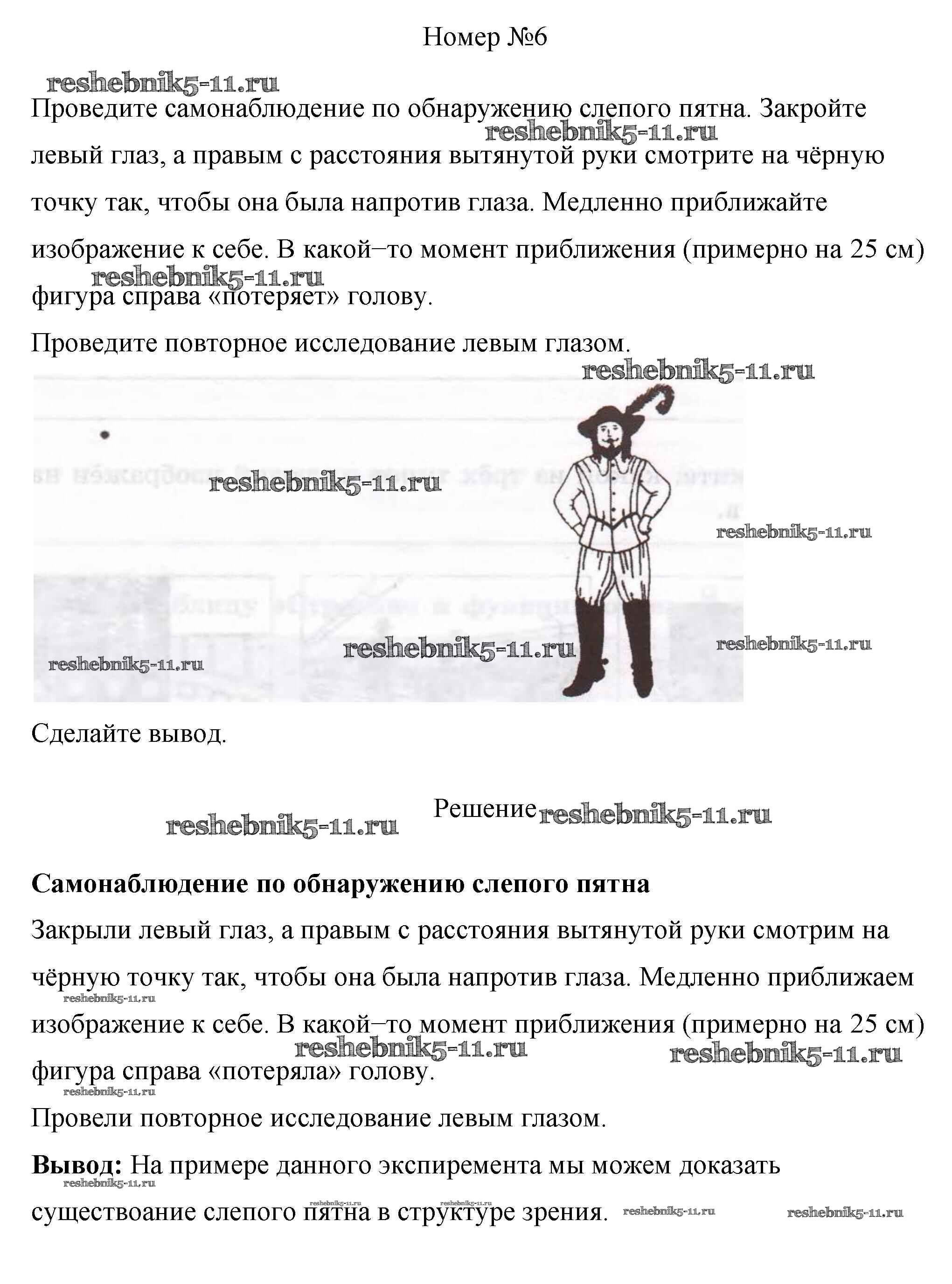 Биология за 8 класс Пасечник Рабочая тетрадь Линия жизни Просвещение §45. понятие об анализаторах 6