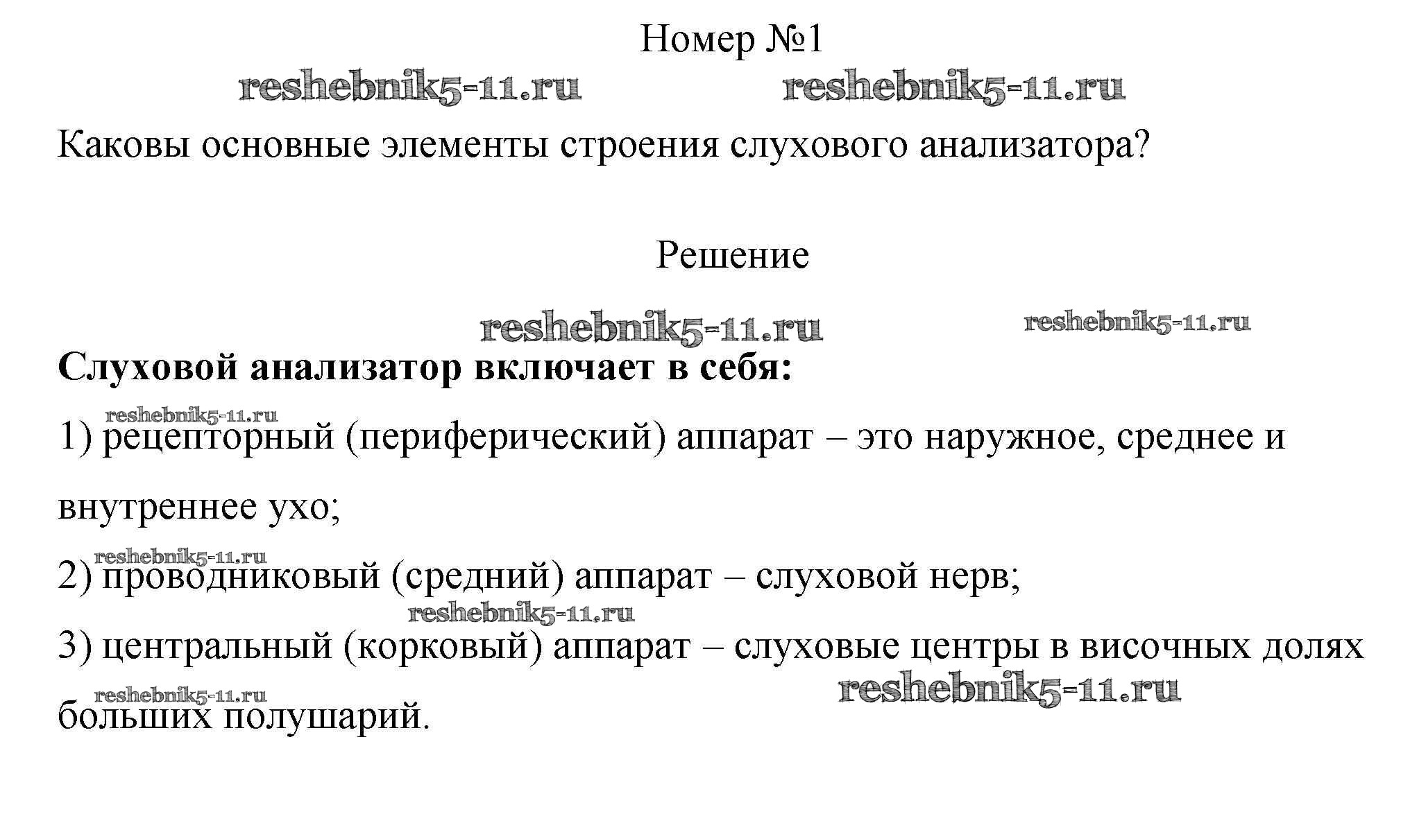 Готовая домашняя работа с ответами по Биологии за 8 класс Пасечник, Швецов Рабочая тетрадь Линия жизни Просвещение 2019 ФГОС - §46. Слуховой анализатор 1