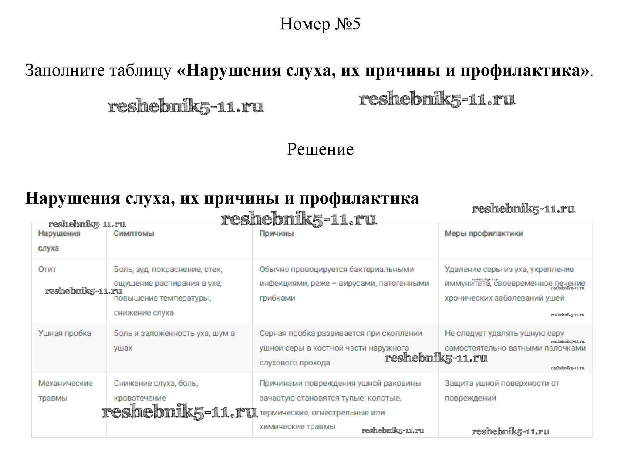 Готовая домашняя работа с ответами по Биологии за 8 класс Пасечник, Швецов Рабочая тетрадь Линия жизни Просвещение 2019 ФГОС - §46. Слуховой анализатор 5