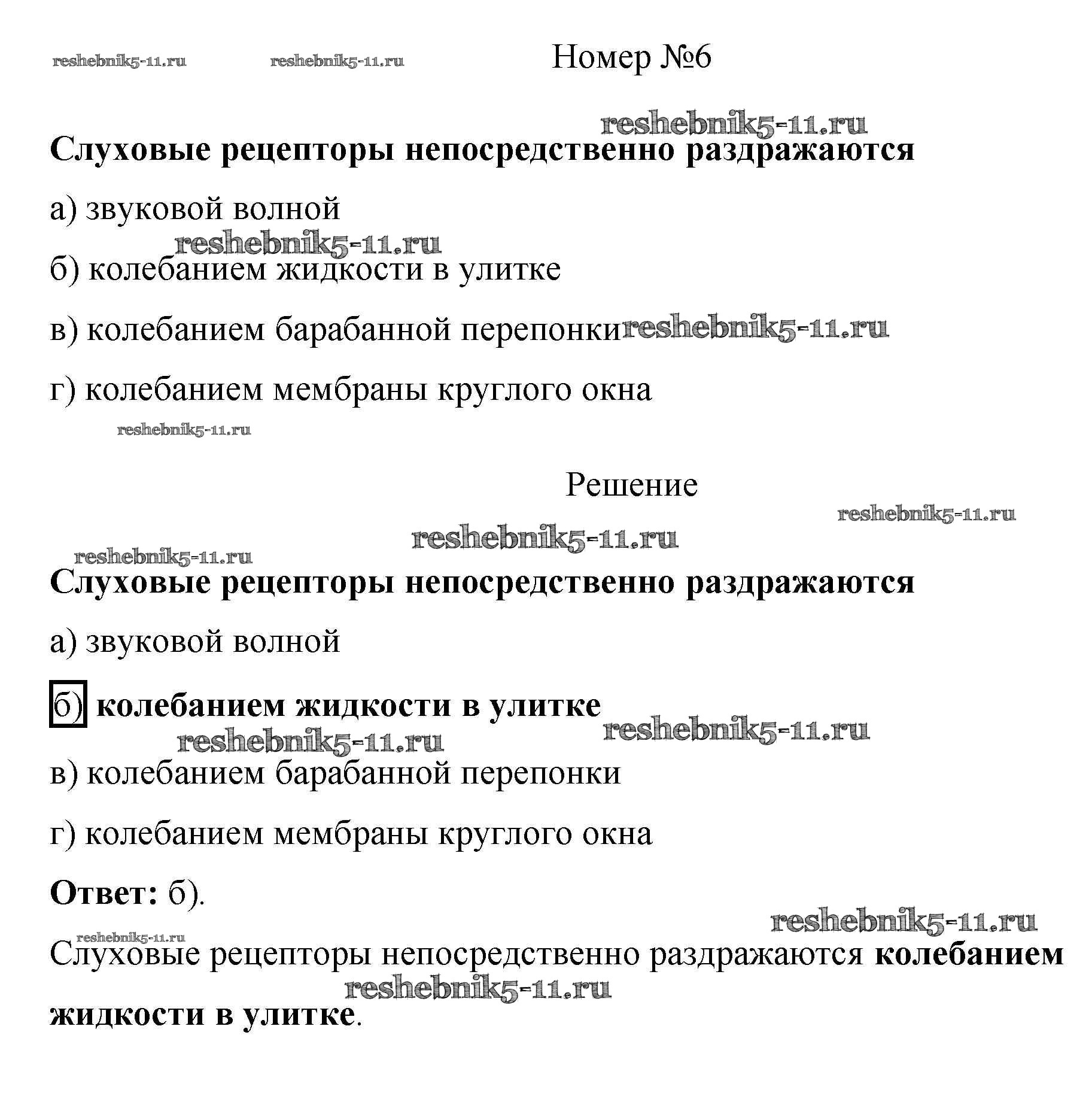 Готовая домашняя работа с ответами по Биологии за 8 класс Пасечник, Швецов Рабочая тетрадь Линия жизни Просвещение 2019 ФГОС - Тестовый контроль 12 6