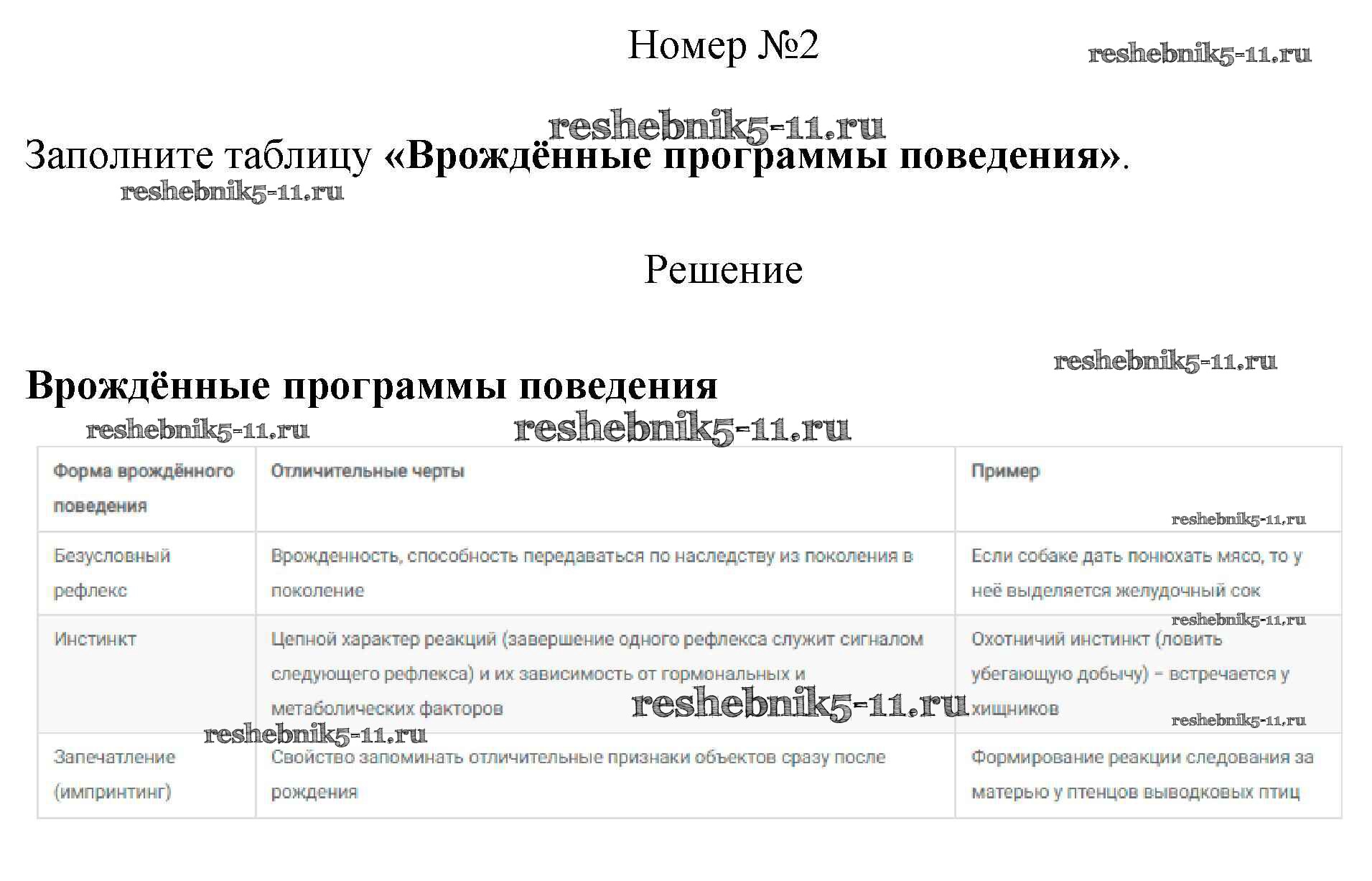 Решебник 2 / §51. врождённое и приобретённое поведение / 2