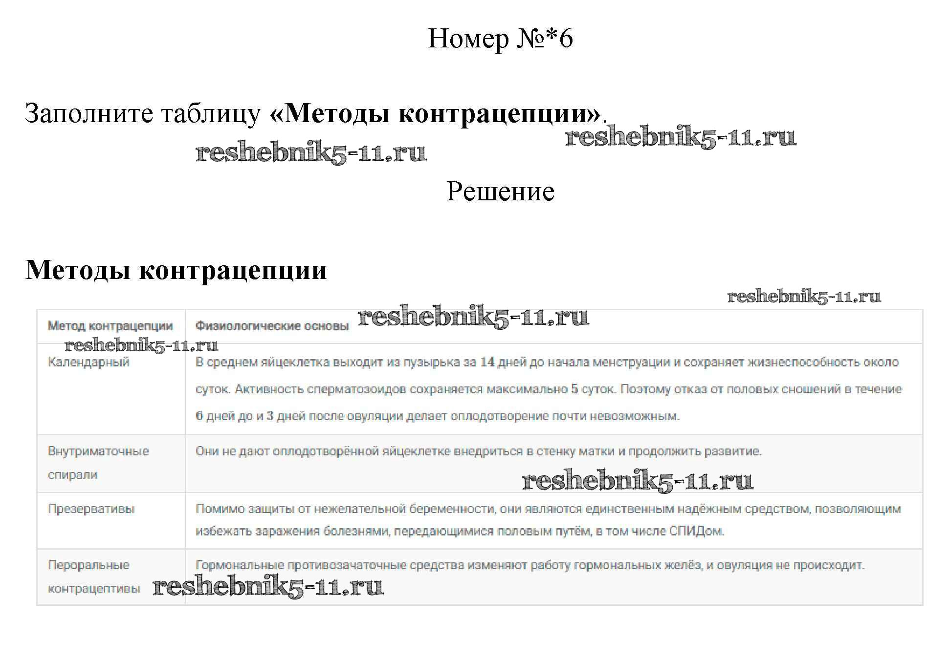 Биология за 8 класс Пасечник Рабочая тетрадь Линия жизни Просвещение §55. органы размножения 6