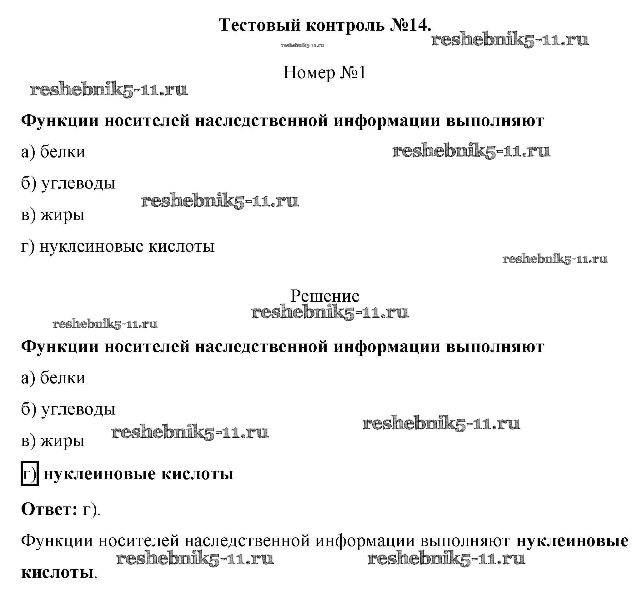 Готовая домашняя работа с ответами по Биологии за 8 класс Пасечник, Швецов Рабочая тетрадь Линия жизни Просвещение 2019 ФГОС - Тестовый контроль 14 1