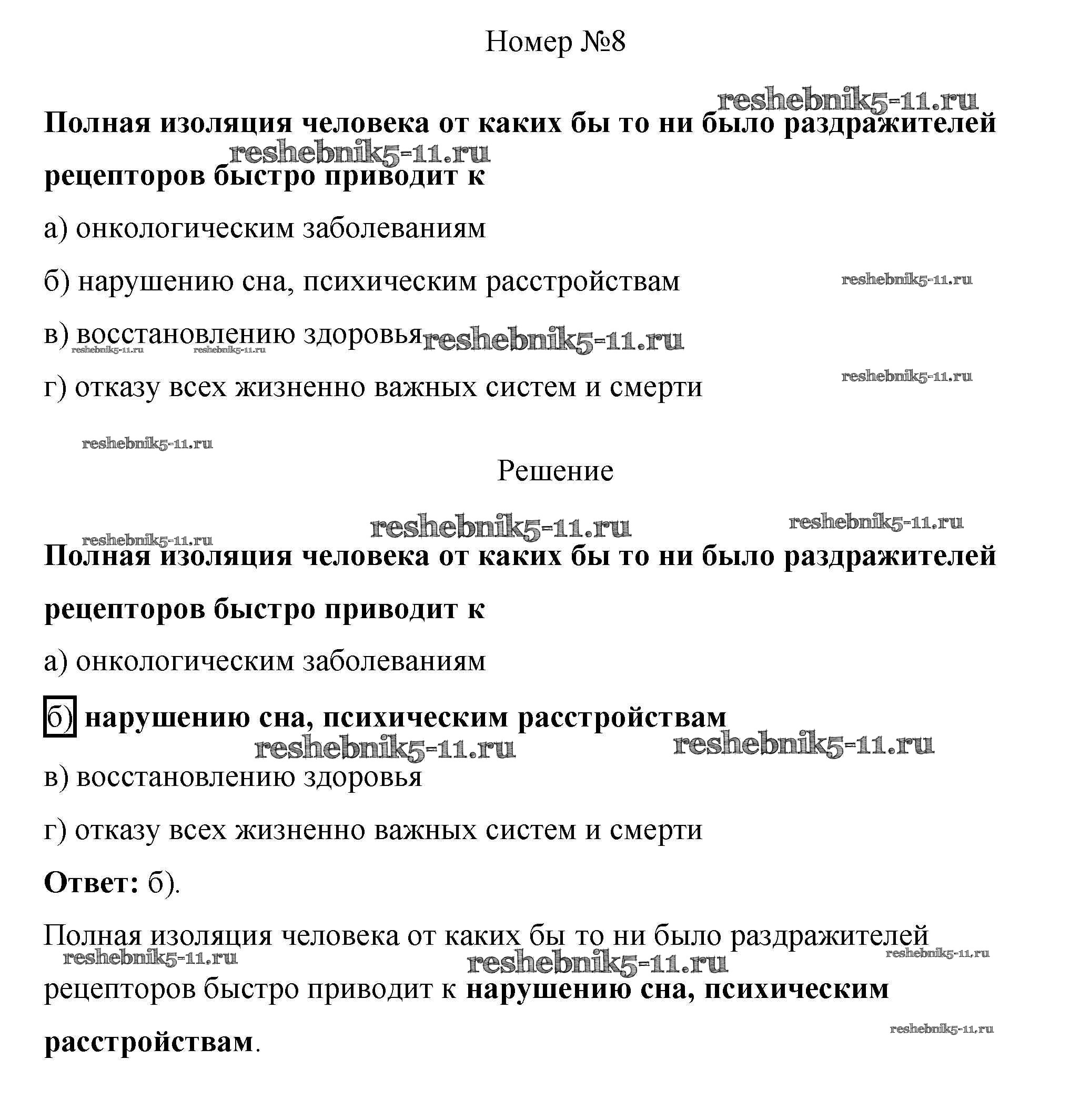 Готовая домашняя работа с ответами по Биологии за 8 класс Пасечник, Швецов Рабочая тетрадь Линия жизни Просвещение 2019 ФГОС - Тестовый контроль 15 8