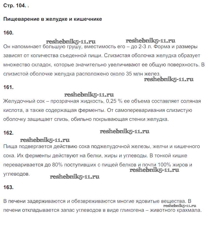 Готовая домашняя работа с ответами по Биологии за 8 класс Сонин, Агафонова Рабочая тетрадь УМК Дрофа 2017 ФГОС - Страницы 104