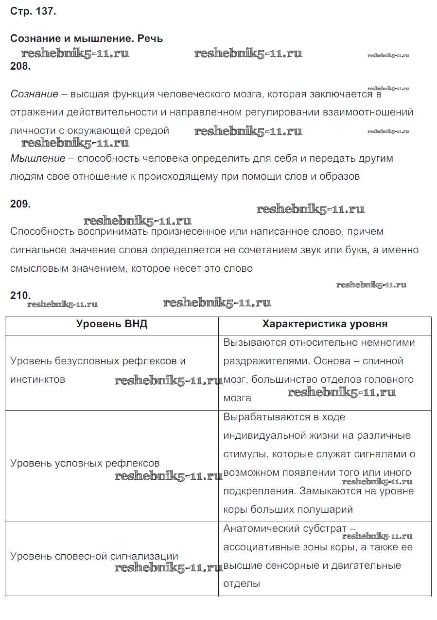 Готовая домашняя работа с ответами по Биологии за 8 класс Сонин, Агафонова Рабочая тетрадь УМК Дрофа 2017 ФГОС - Страницы 137