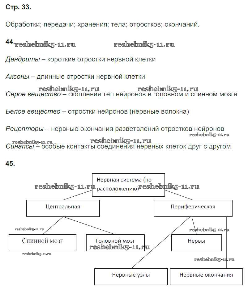 Готовая домашняя работа с ответами по Биологии за 8 класс Сонин, Агафонова Рабочая тетрадь УМК Дрофа 2017 ФГОС - Страницы 33