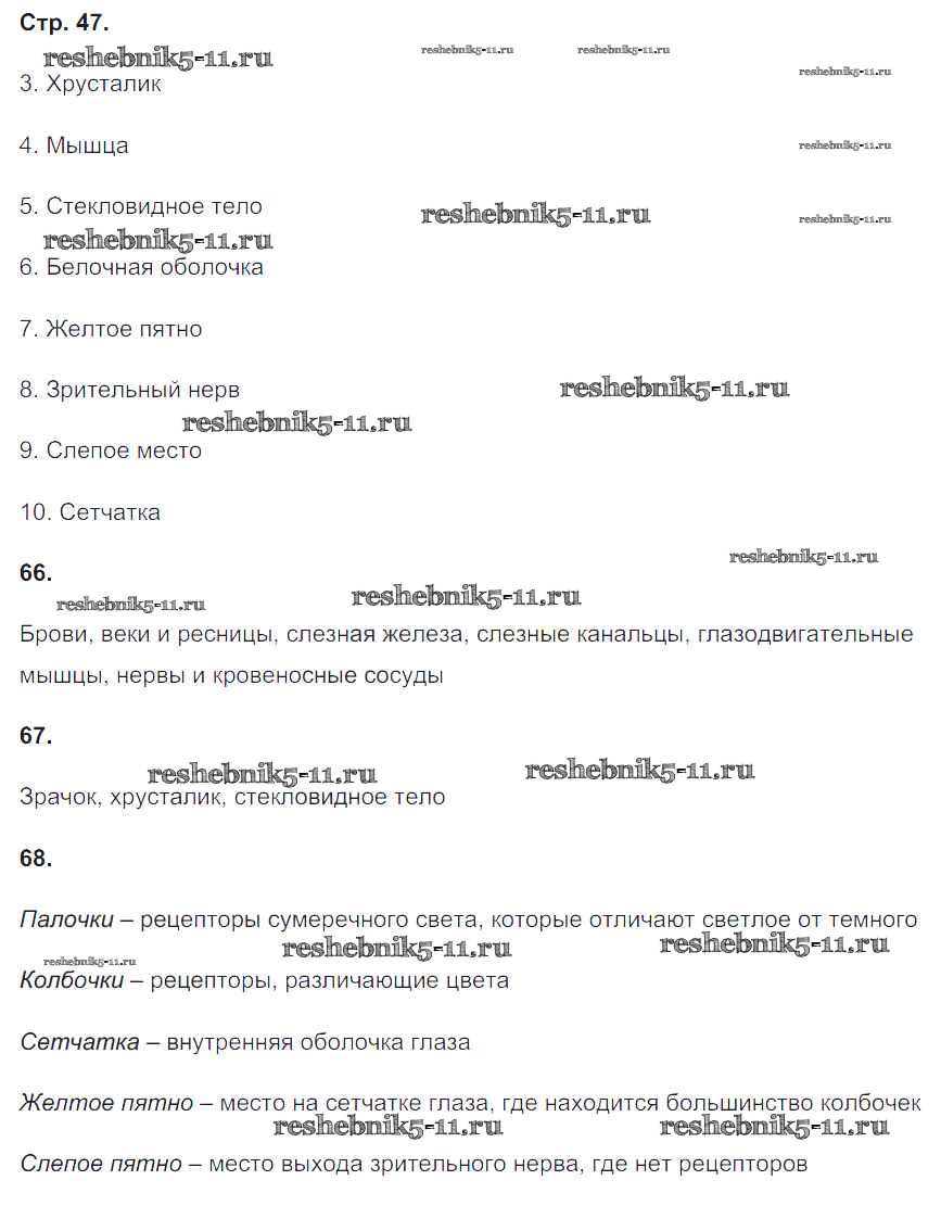 Готовая домашняя работа с ответами по Биологии за 8 класс Сонин, Агафонова Рабочая тетрадь УМК Дрофа 2017 ФГОС - Страницы 47