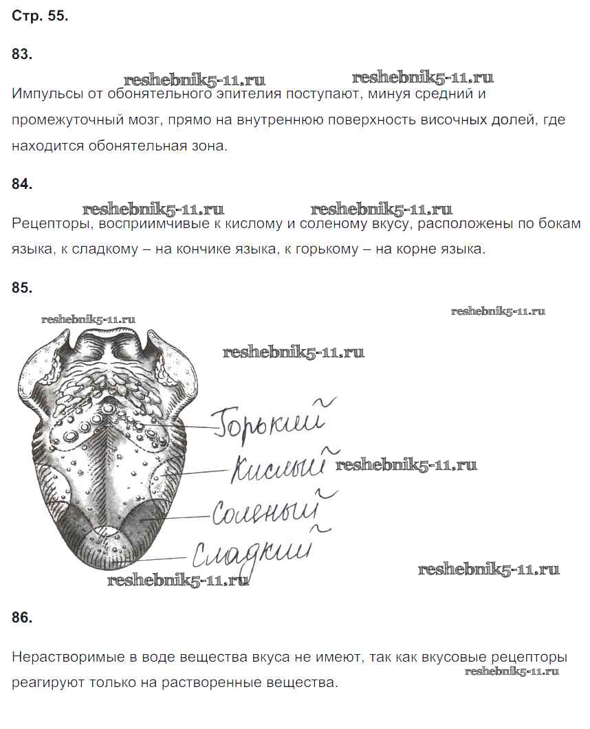 Готовая домашняя работа с ответами по Биологии за 8 класс Сонин, Агафонова Рабочая тетрадь УМК Дрофа 2017 ФГОС - Страницы 55
