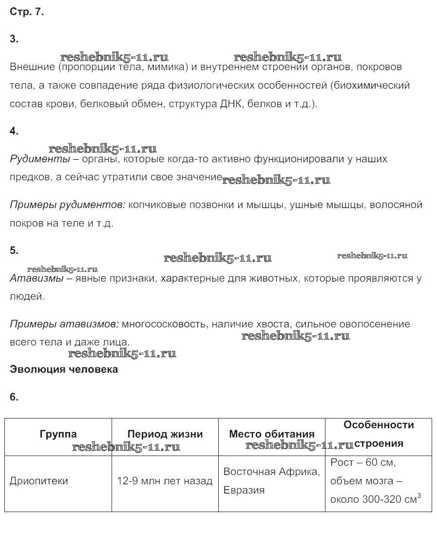 Готовая домашняя работа с ответами по Биологии за 8 класс Сонин, Агафонова Рабочая тетрадь УМК Дрофа 2017 ФГОС - Страницы 7