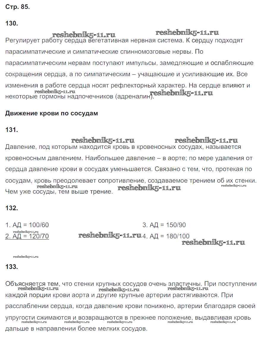Готовая домашняя работа с ответами по Биологии за 8 класс Сонин, Агафонова Рабочая тетрадь УМК Дрофа 2017 ФГОС - Страницы 85