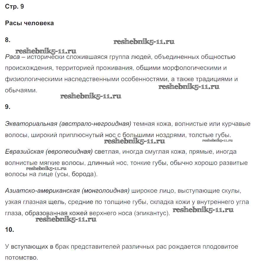 Готовая домашняя работа с ответами по Биологии за 8 класс Сонин, Агафонова Рабочая тетрадь УМК Дрофа 2017 ФГОС - Страницы 9