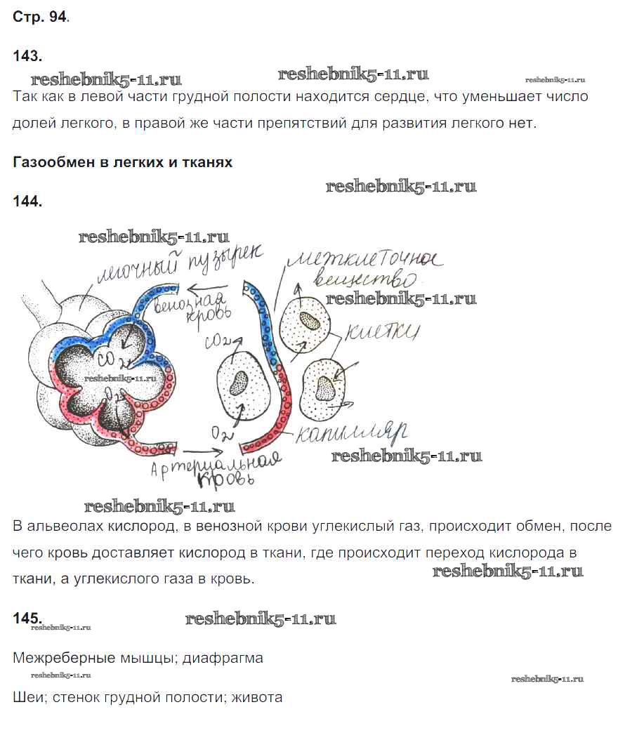Готовая домашняя работа с ответами по Биологии за 8 класс Сонин, Агафонова Рабочая тетрадь УМК Дрофа 2017 ФГОС - Страницы 94