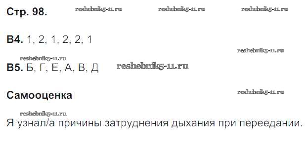 Готовая домашняя работа с ответами по Биологии за 8 класс Сонин, Агафонова Рабочая тетрадь УМК Дрофа 2017 ФГОС - Страницы 98