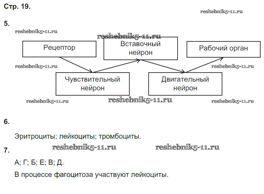 Готовая домашняя работа с ответами по Биологии за 8 класс Сухорукова, Кучменко, Дмитриева Тетрадь-тренажер Сферы Просвещение 2017 ФГОС - Страницы 19