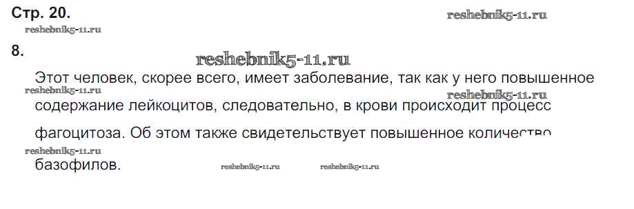 Готовая домашняя работа с ответами по Биологии за 8 класс Сухорукова, Кучменко, Дмитриева Тетрадь-тренажер Сферы Просвещение 2017 ФГОС - Страницы 20