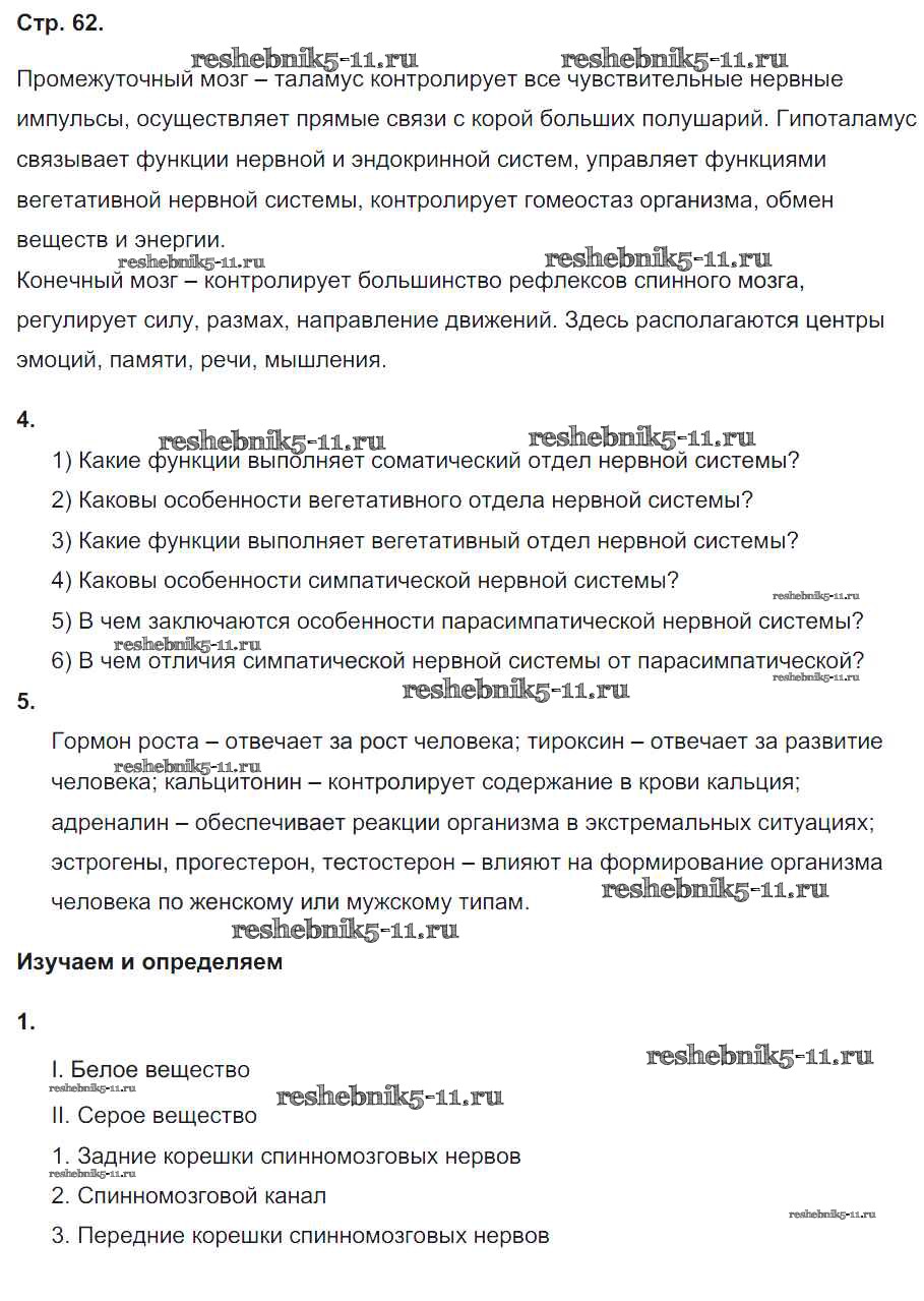 Готовая домашняя работа с ответами по Биологии за 8 класс Сухорукова, Кучменко, Дмитриева Тетрадь-тренажер Сферы Просвещение 2017 ФГОС - Страницы 62