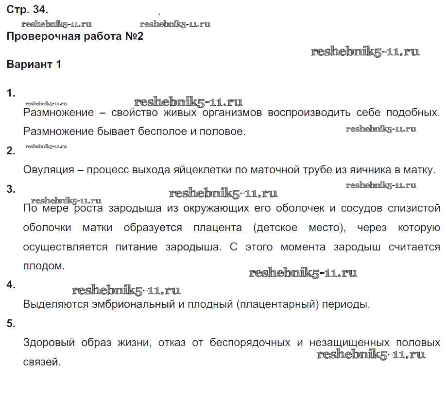 Готовая домашняя работа с ответами по Биологии за 8 класс Сухорукова, Кучменко, Ефремова Тетрадь-экзаменатор Сферы Просвещение 2016 ФГОС - Страницы 34