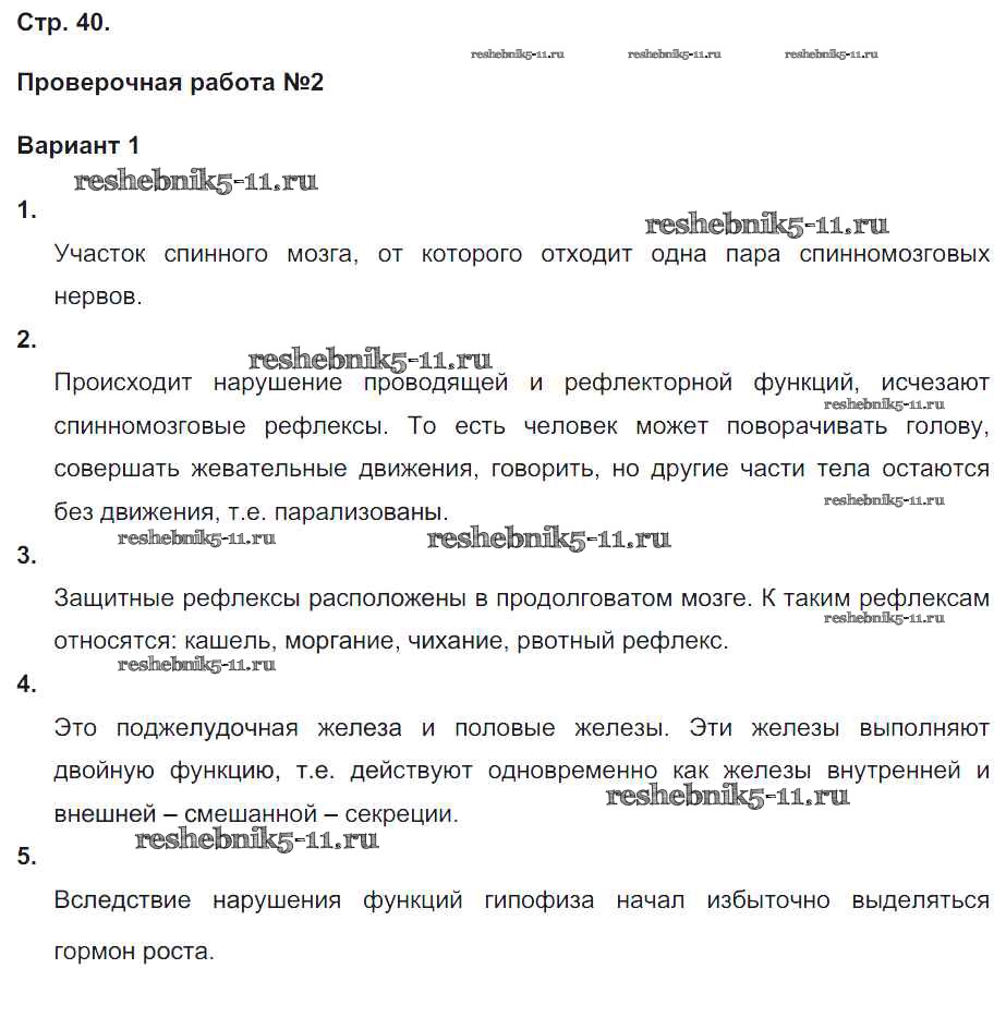 Готовая домашняя работа с ответами по Биологии за 8 класс Сухорукова, Кучменко, Ефремова Тетрадь-экзаменатор Сферы Просвещение 2016 ФГОС - Страницы 40