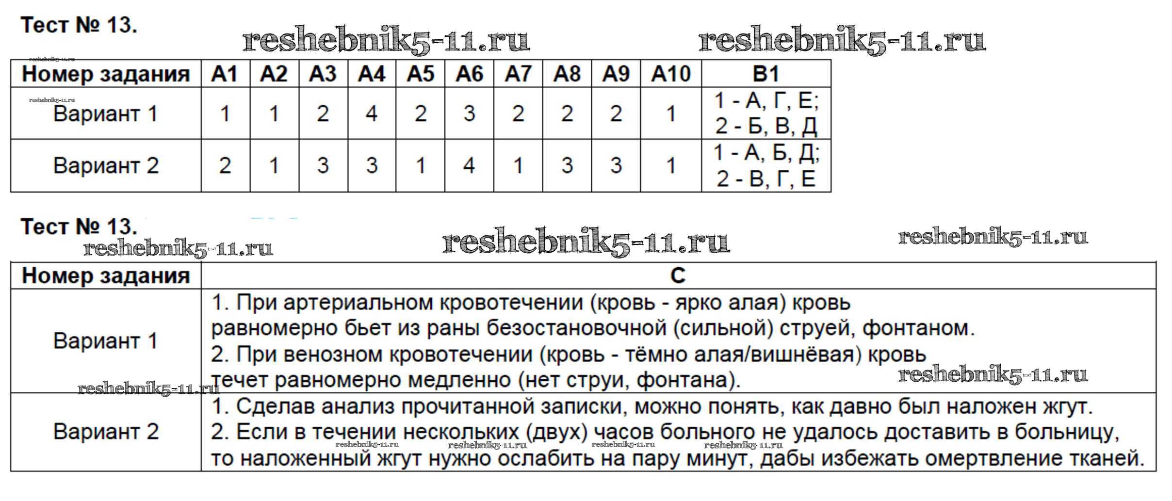 Готовая домашняя работа с ответами по Биологии за 8 класс Богданов Контрольно-измерительные материалы (КИМ) ВАКО 2017 ФГОС - Тесты 13