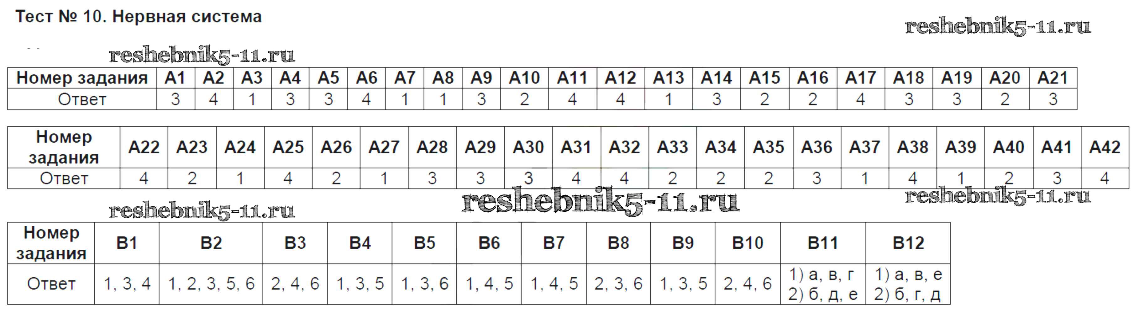 Готовая домашняя работа с ответами по Биологии за 8 класс Солодова Тестовые задания Вентана-граф 2019 ФГОС - Тесты 10