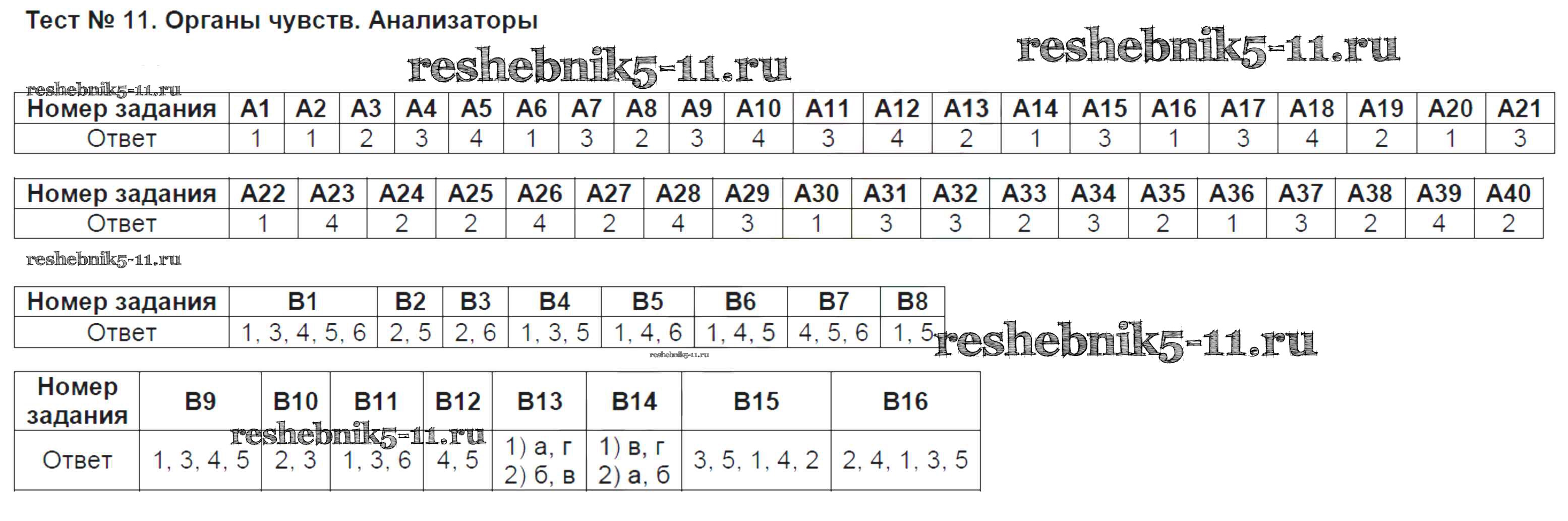 Готовая домашняя работа с ответами по Биологии за 8 класс Солодова Тестовые задания Вентана-граф 2019 ФГОС - Тесты 11