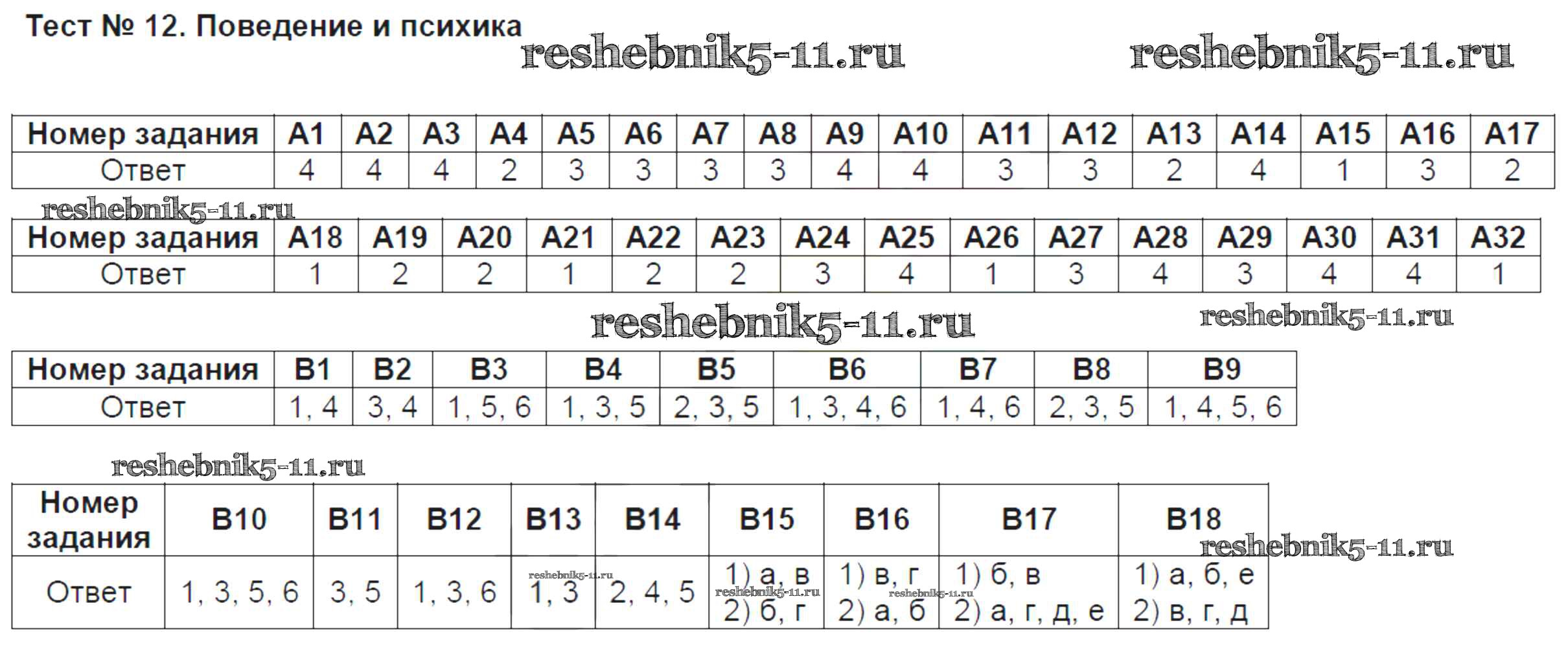 Готовая домашняя работа с ответами по Биологии за 8 класс Солодова Тестовые задания Вентана-граф 2019 ФГОС - Тесты 12