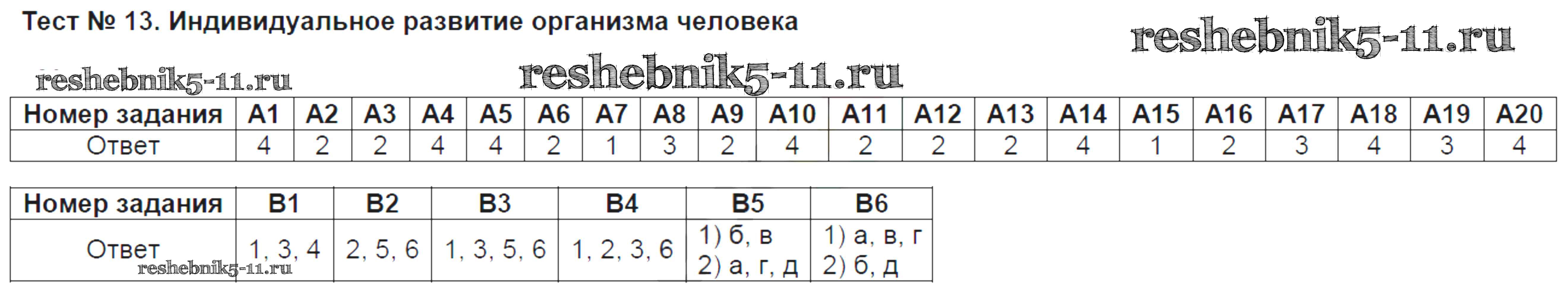 Готовая домашняя работа с ответами по Биологии за 8 класс Солодова Тестовые задания Вентана-граф 2019 ФГОС - Тесты 13