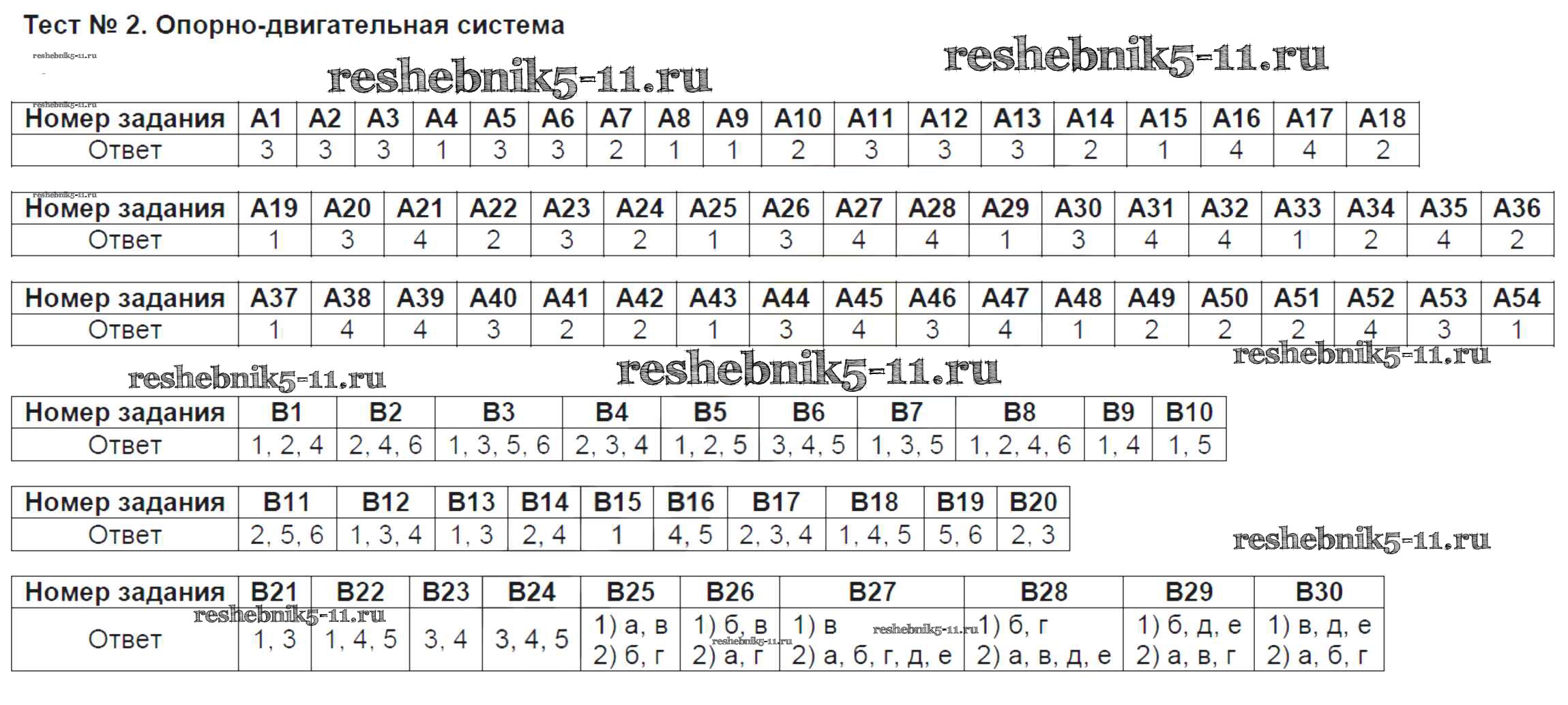 Готовая домашняя работа с ответами по Биологии за 8 класс Солодова Тестовые задания Вентана-граф 2019 ФГОС - Тесты 2