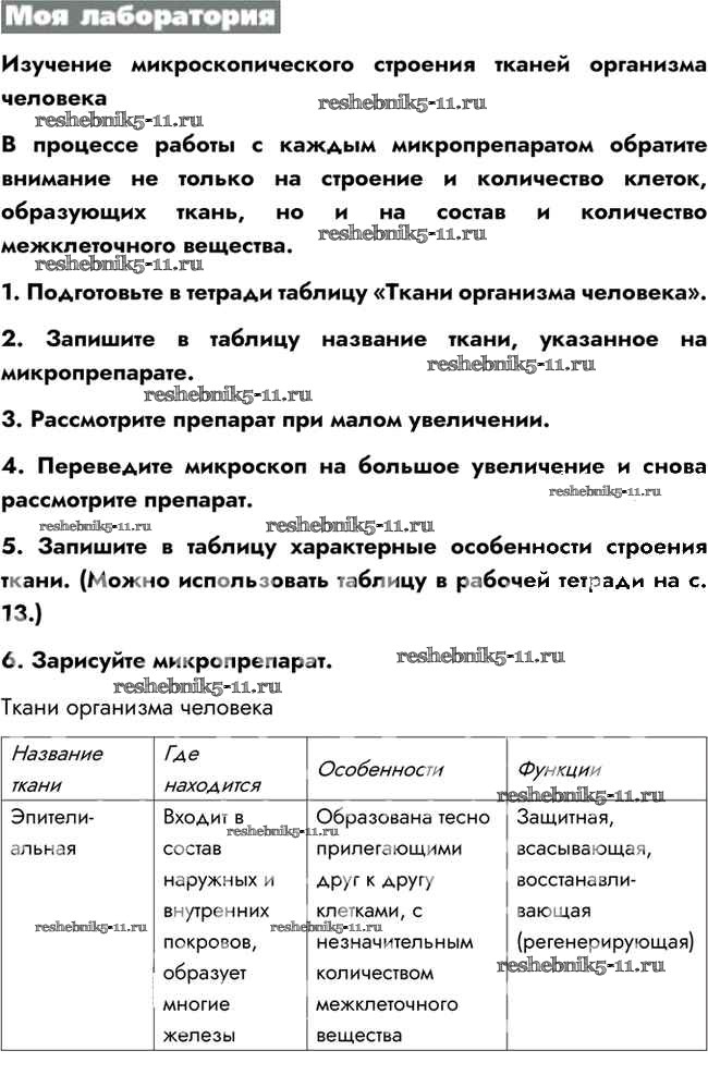 Готовая домашняя работа с ответами по Биологии за 8 класс Пасечник, Каменский, Швецов Учебник Линия жизни Просвещение 2016 ФГОС - Моя лаборатория 1