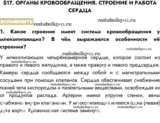 §17. Органы кровообращения. Строение и работа сердца