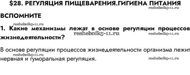 Готовая домашняя работа с ответами по Биологии за 8 класс Пасечник, Каменский, Швецов Учебник Линия жизни Просвещение 2016 ФГОС - Вспомните 1