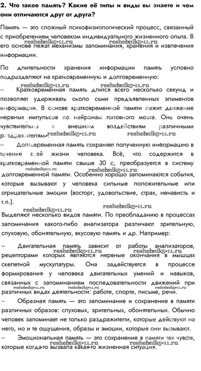 Готовая домашняя работа с ответами по Биологии за 8 класс Пасечник, Каменский, Швецов Учебник Линия жизни Просвещение 2016 ФГОС - Вопросы 2