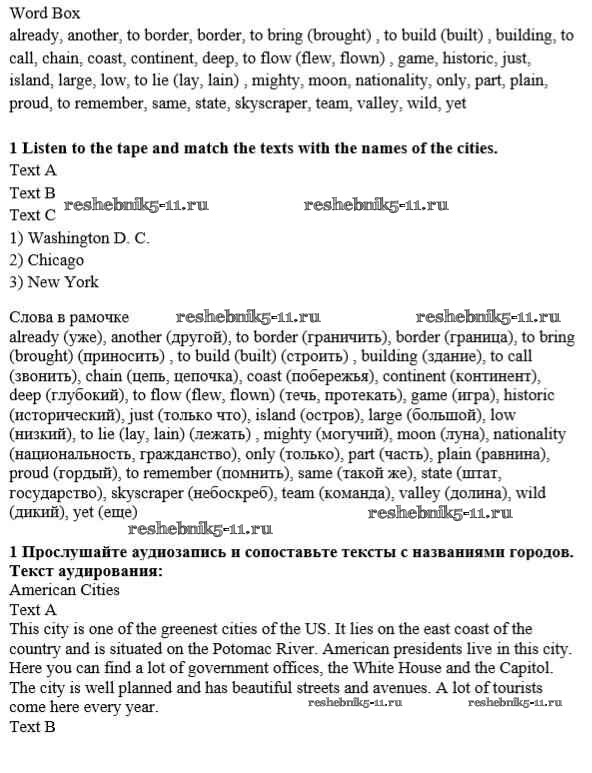 Готовая домашняя работа с ответами по Английскому языку за 8 класс Афанасьева, Михеева Рабочая тетрадь Новый курс Часть 1, 2 Дрофа 2017 ФГОС - Unit 1. Visiting the USA 1
