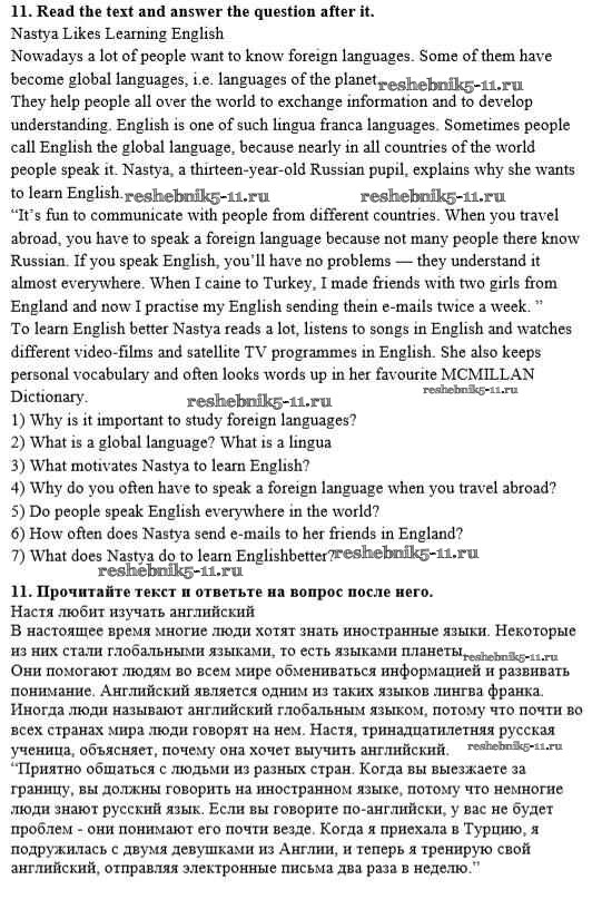 Готовая домашняя работа с ответами по Английскому языку за 8 класс Афанасьева, Михеева Рабочая тетрадь Новый курс Часть 1, 2 Дрофа 2017 ФГОС - Unit 2. English - a Global Language 11