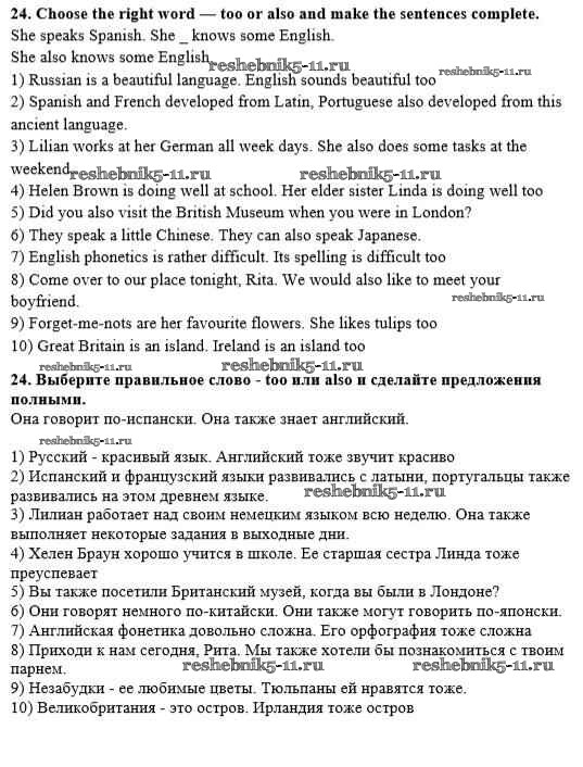 Готовая домашняя работа с ответами по Английскому языку за 8 класс Афанасьева, Михеева Рабочая тетрадь Новый курс Часть 1, 2 Дрофа 2017 ФГОС - Unit 2. English - a Global Language 24
