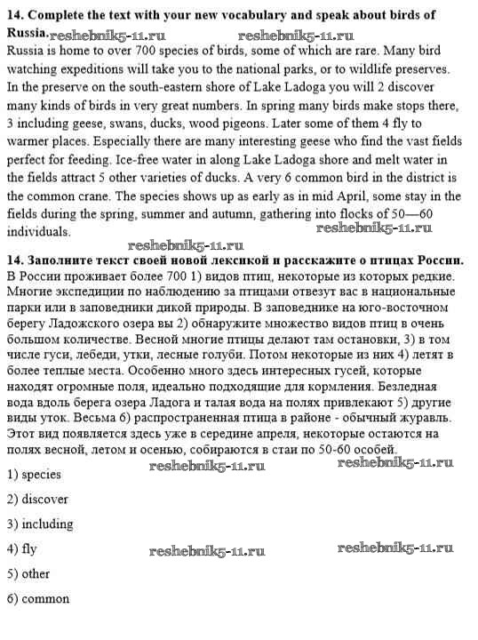 Готовая домашняя работа с ответами по Английскому языку за 8 класс Афанасьева, Михеева Рабочая тетрадь Новый курс Часть 1, 2 Дрофа 2017 ФГОС - Unit 3. Living Things around Us 14