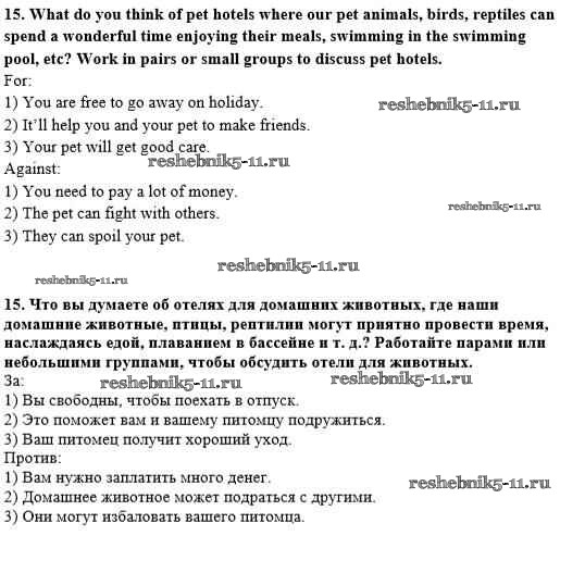 Готовая домашняя работа с ответами по Английскому языку за 8 класс Афанасьева, Михеева Рабочая тетрадь Новый курс Часть 1, 2 Дрофа 2017 ФГОС - Unit 3. Living Things around Us 15