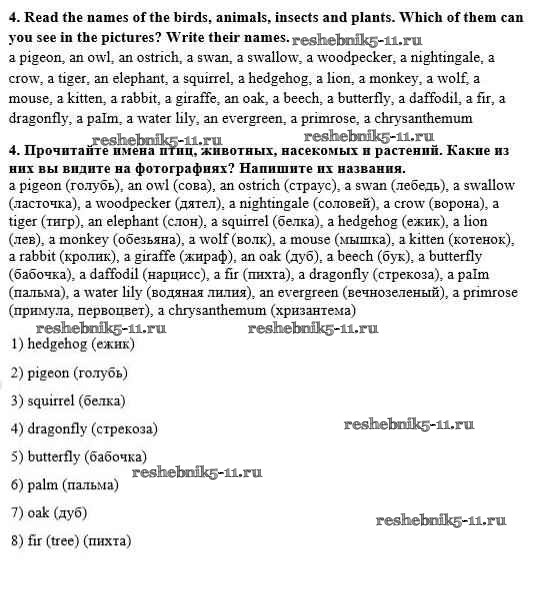 Готовая домашняя работа с ответами по Английскому языку за 8 класс Афанасьева, Михеева Рабочая тетрадь Новый курс Часть 1, 2 Дрофа 2017 ФГОС - Unit 3. Living Things around Us 4
