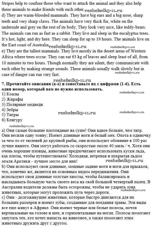Готовая домашняя работа с ответами по Английскому языку за 8 класс Афанасьева, Михеева Рабочая тетрадь Новый курс Часть 1, 2 Дрофа 2017 ФГОС - Unit 3. Living Things around Us 7