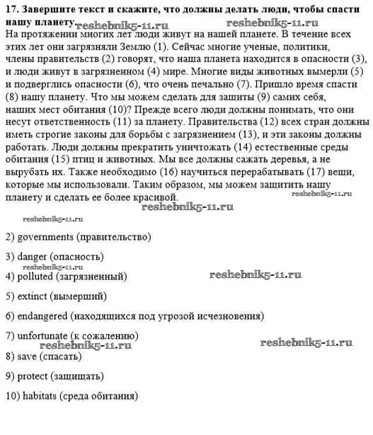 Готовая домашняя работа с ответами по Английскому языку за 8 класс Афанасьева, Михеева Рабочая тетрадь Новый курс Часть 1, 2 Дрофа 2017 ФГОС - Unit 4. The ABC of Ecology 17