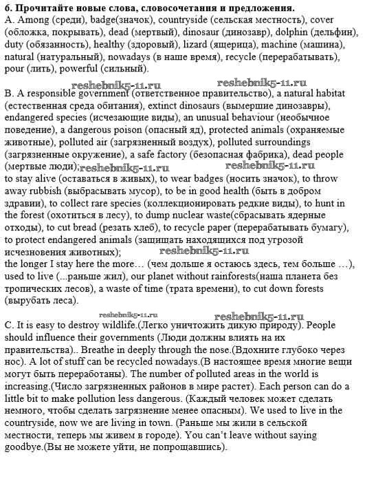 Готовая домашняя работа с ответами по Английскому языку за 8 класс Афанасьева, Михеева Рабочая тетрадь Новый курс Часть 1, 2 Дрофа 2017 ФГОС - Unit 4. The ABC of Ecology 6