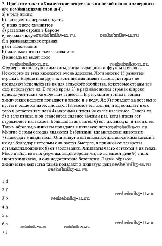 Готовая домашняя работа с ответами по Английскому языку за 8 класс Афанасьева, Михеева Рабочая тетрадь Новый курс Часть 1, 2 Дрофа 2017 ФГОС - Unit 4. The ABC of Ecology 7