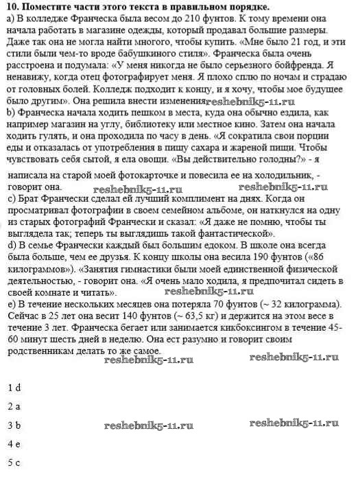 Готовая домашняя работа с ответами по Английскому языку за 8 класс Афанасьева, Михеева Рабочая тетрадь Новый курс Часть 1, 2 Дрофа 2017 ФГОС - Unit 5. Keeping Fit 10