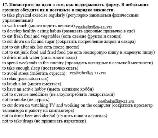 Готовая домашняя работа с ответами по Английскому языку за 8 класс Афанасьева, Михеева Рабочая тетрадь Новый курс Часть 1, 2 Дрофа 2017 ФГОС - Unit 5. Keeping Fit 17
