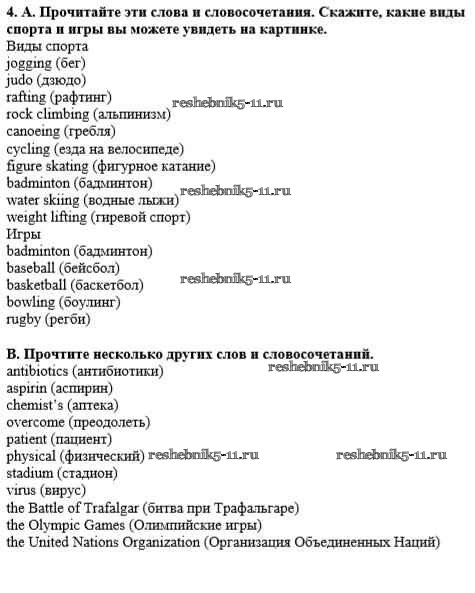 Готовая домашняя работа с ответами по Английскому языку за 8 класс Афанасьева, Михеева Рабочая тетрадь Новый курс Часть 1, 2 Дрофа 2017 ФГОС - Unit 5. Keeping Fit 4