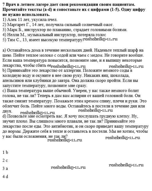 Готовая домашняя работа с ответами по Английскому языку за 8 класс Афанасьева, Михеева Рабочая тетрадь Новый курс Часть 1, 2 Дрофа 2017 ФГОС - Unit 5. Keeping Fit 7