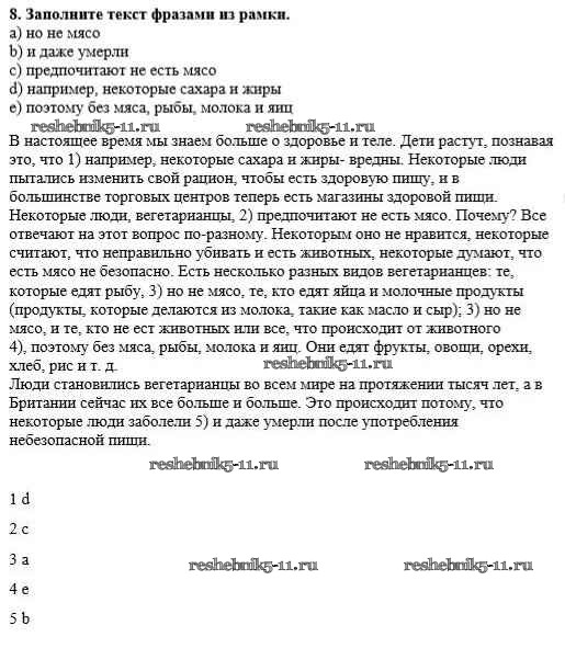 Готовая домашняя работа с ответами по Английскому языку за 8 класс Афанасьева, Михеева Рабочая тетрадь Новый курс Часть 1, 2 Дрофа 2017 ФГОС - Unit 5. Keeping Fit 8
