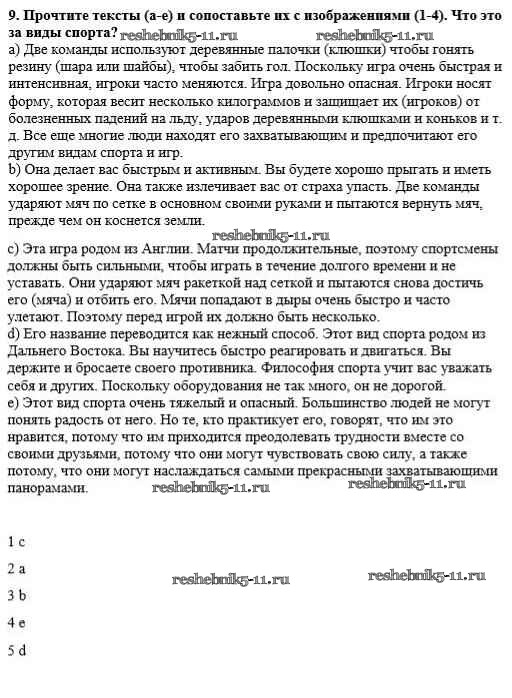 Готовая домашняя работа с ответами по Английскому языку за 8 класс Афанасьева, Михеева Рабочая тетрадь Новый курс Часть 1, 2 Дрофа 2017 ФГОС - Unit 5. Keeping Fit 9
